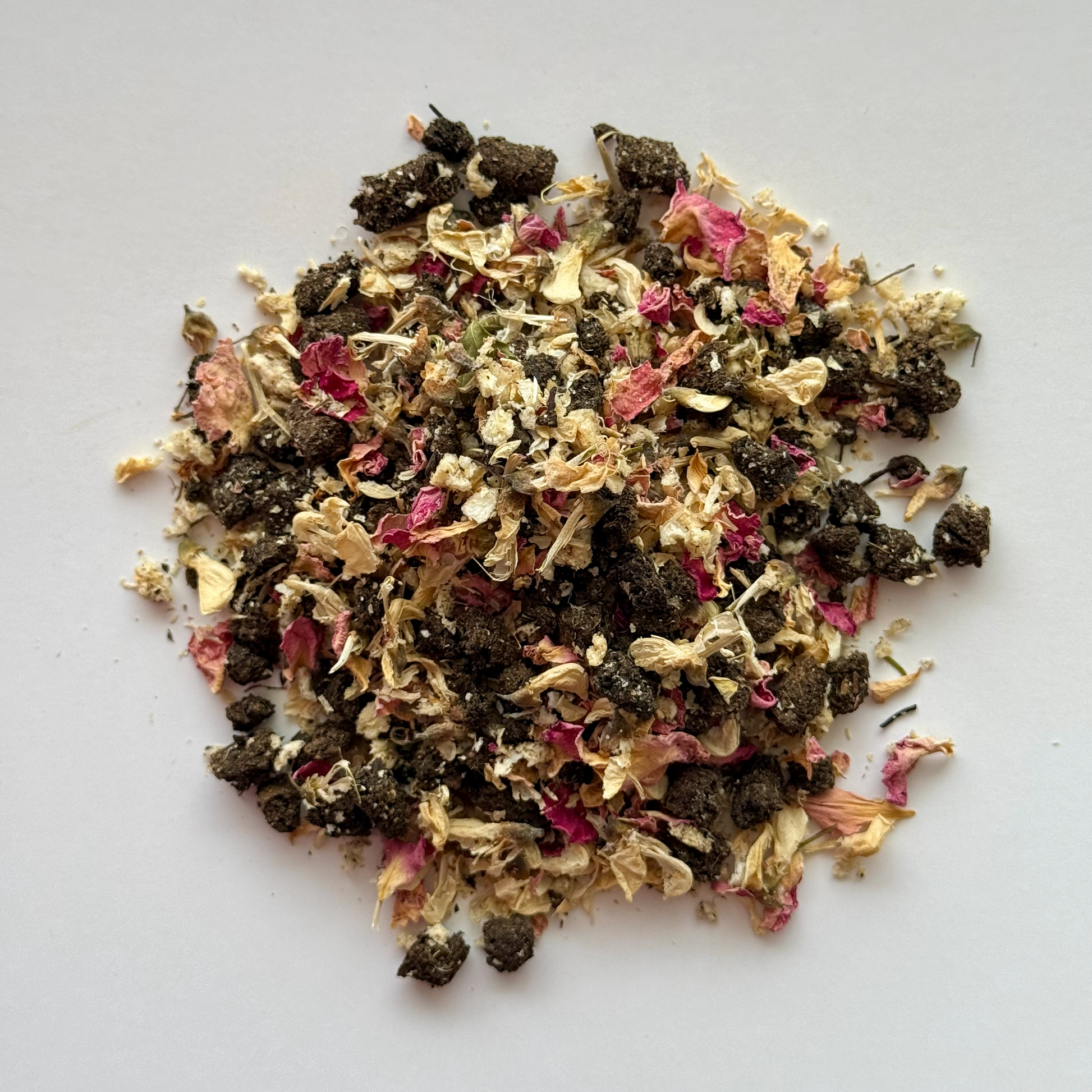 Ingredients: Ingredients: Fermented pear leaves, white acacia flowers, tea rose petals, pear fruit